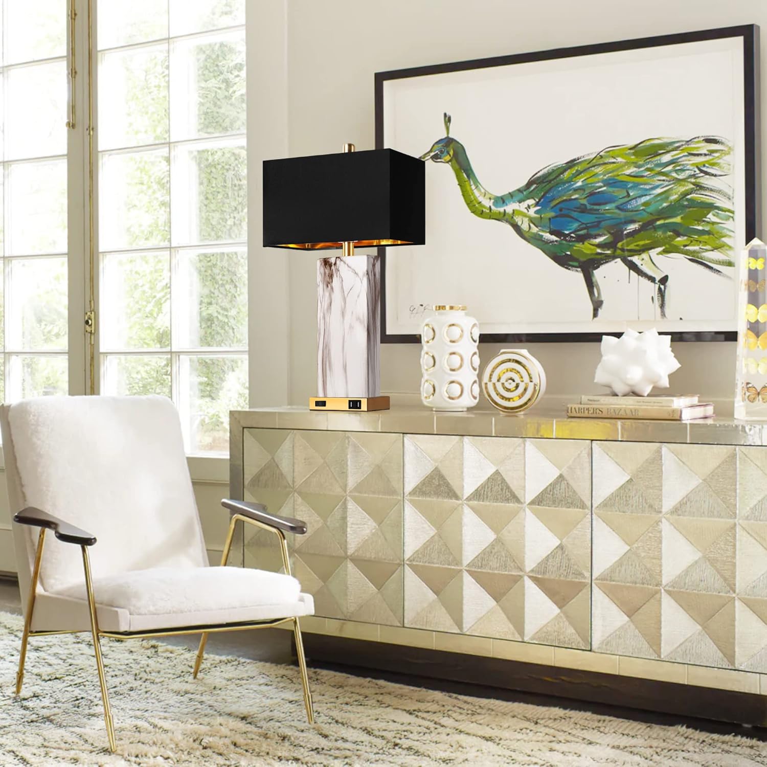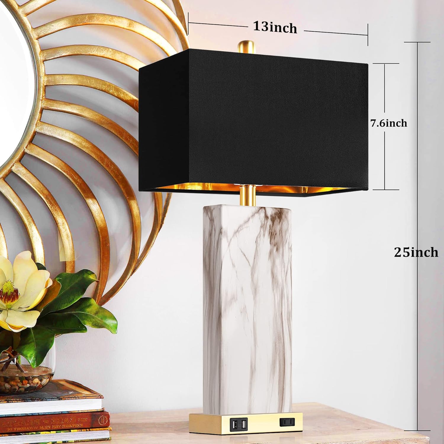 Product Name:Touch Control Table Lamps Set of 2, Modern Contemporary Bedside Lamp with 2 USB Ports 1 AC Outlet, 3-Way Dimmable Nightstand Lamp Faux Marble Gold Black Rectangular Shade for Living Room Bedroom