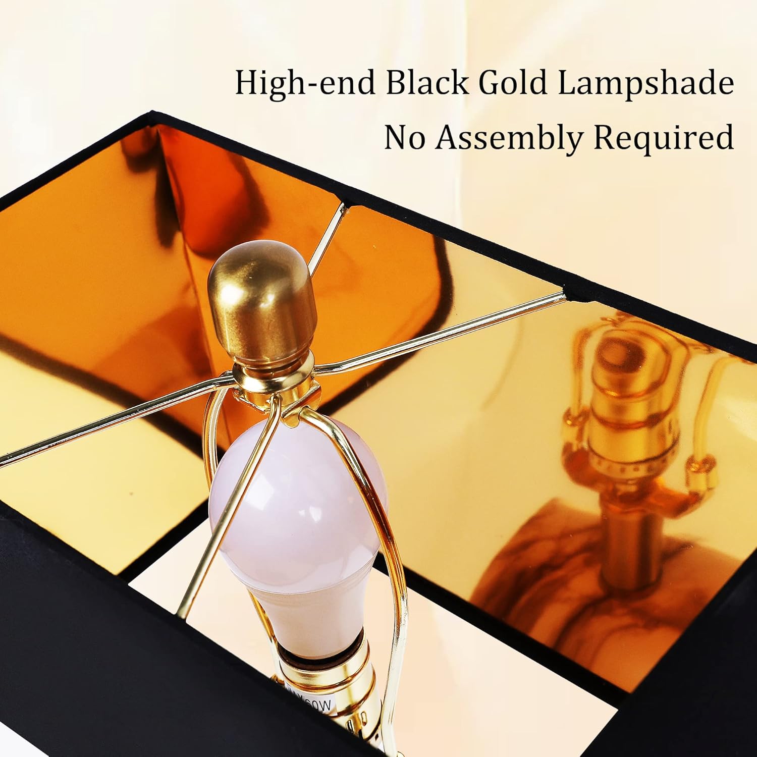- Modern contemporary table lamp: black and gold is a classic combination that always looks stylish and elevates a space. This contemporary table lamp features a golden base and is accented with white faux marble. A matching black rectangular shade with gold foil lining creates the perfect finishing touch to the luxe design. Please note, because the ceramic body is handmade, slight variations in color and pattern may occur.